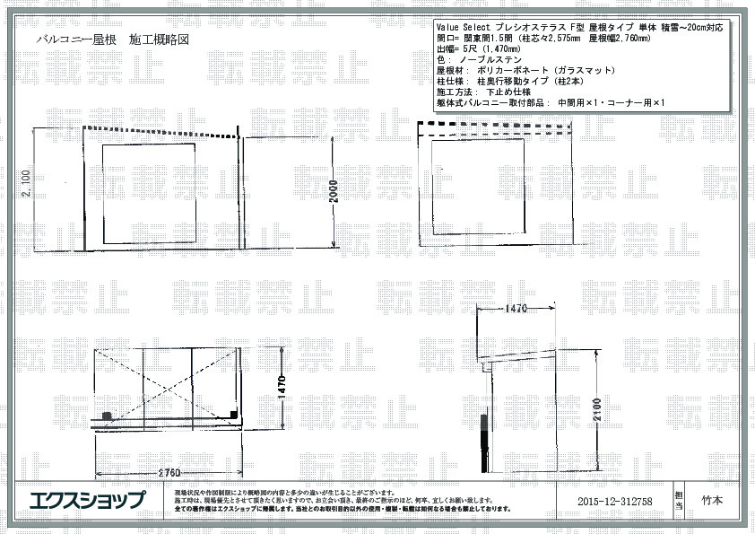 | サイズ | 屋根幅 2,760mm 出幅 1,470mm |