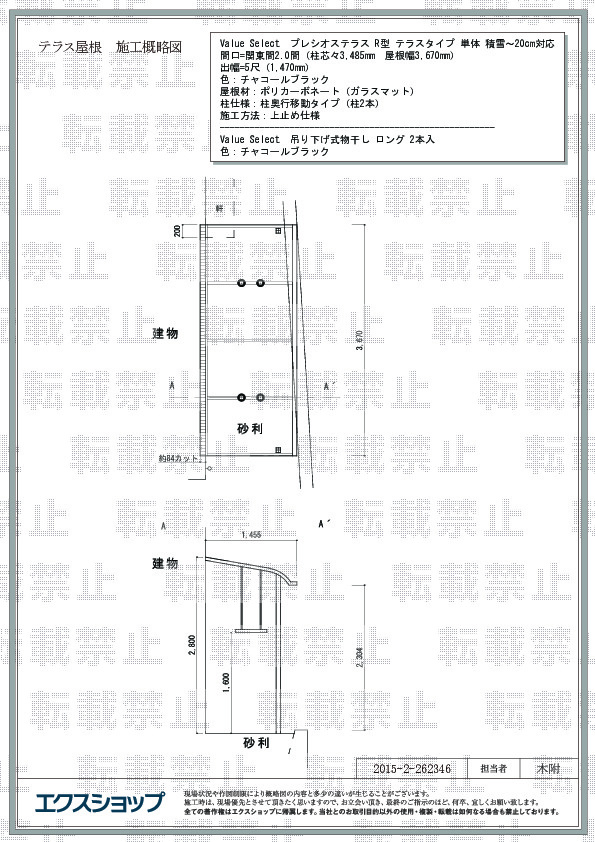 | サイズ | 屋根幅 3,670mm 出幅 1,470mm |