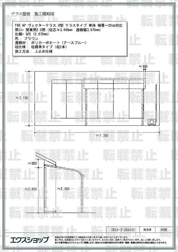 | サイズ | 屋根幅 3,670mm 出幅 2,670mm |