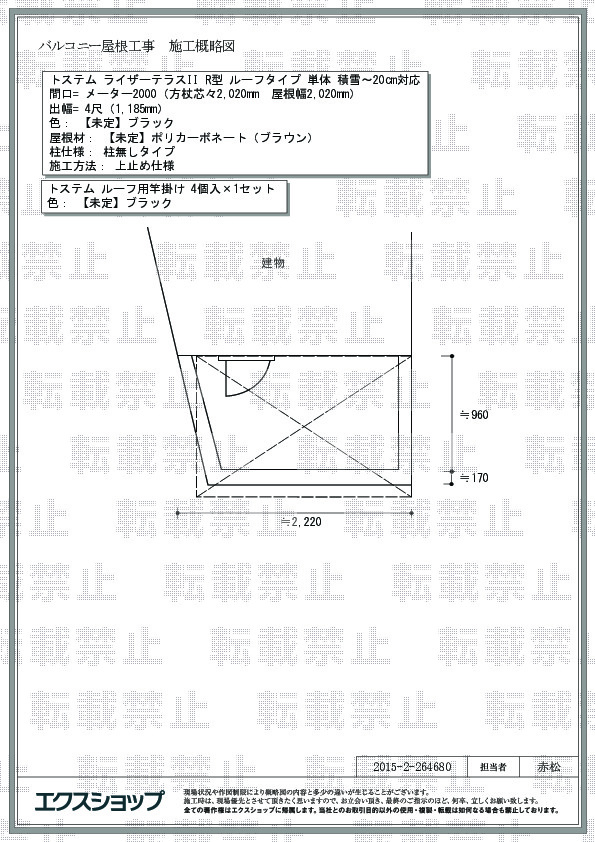 | サイズ | 屋根幅 2,020mm 出幅 1,185mm |