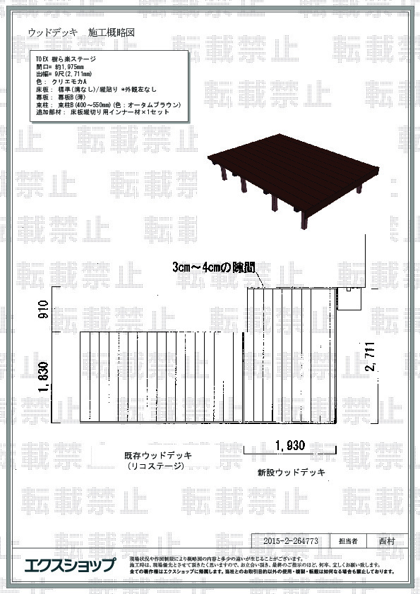 この度は樹ら楽ステージの施工をご依頼頂き、誠に有り難うございました。既存のウッドデッキとの接続も綺麗に仕上がり、更に広くなったウッドデッキは、ご家族の団欒の場など様々な用途に幅広くご活用頂けるものと存じます。今後も、お客様の快適なお住まいづくりのお手伝いが出来ますよう、エクスショップは努力を重ねて参ります。また機会がございましたら、是非弊社にご用命くださいますよう、宜しくお願い申し上げます。