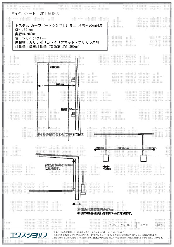 この度はカーブポートシグマIII ミニの施工をご依頼頂きまして、誠に有り難うございます。建物の屋根と干渉することなくサイクルポートが納まり、スマートなお仕上がりでございますね。お気に召して頂き永くご愛用頂けましたら幸いでございます。今後もお客様の笑顔の為日々精進して参りますので、また機会がございましたらエクスショップをご用命下さいますよう、宜しくお願い申し上げます。