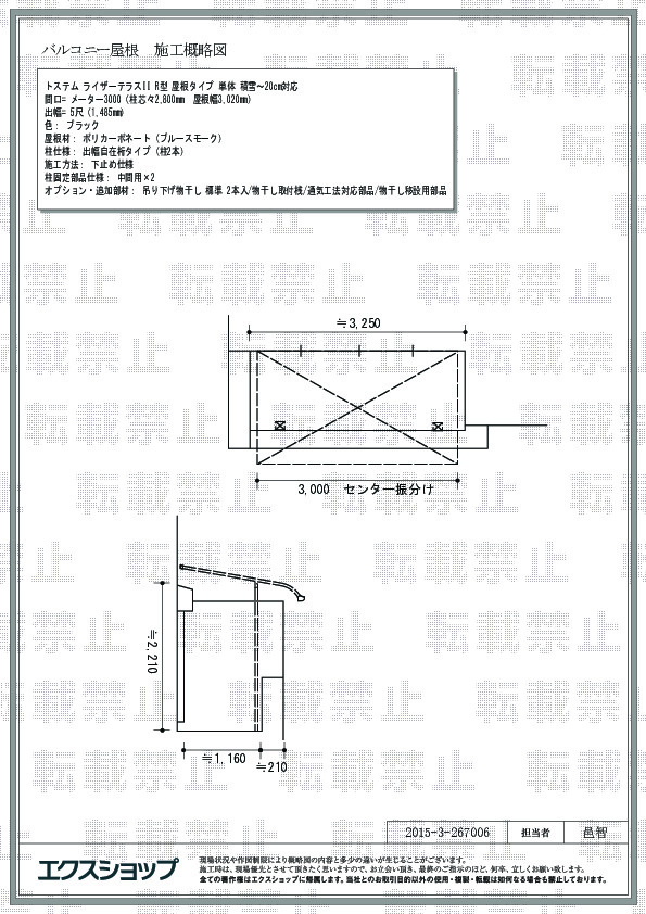 | 柱仕様 | 出幅自在桁タイプ(柱2本) |