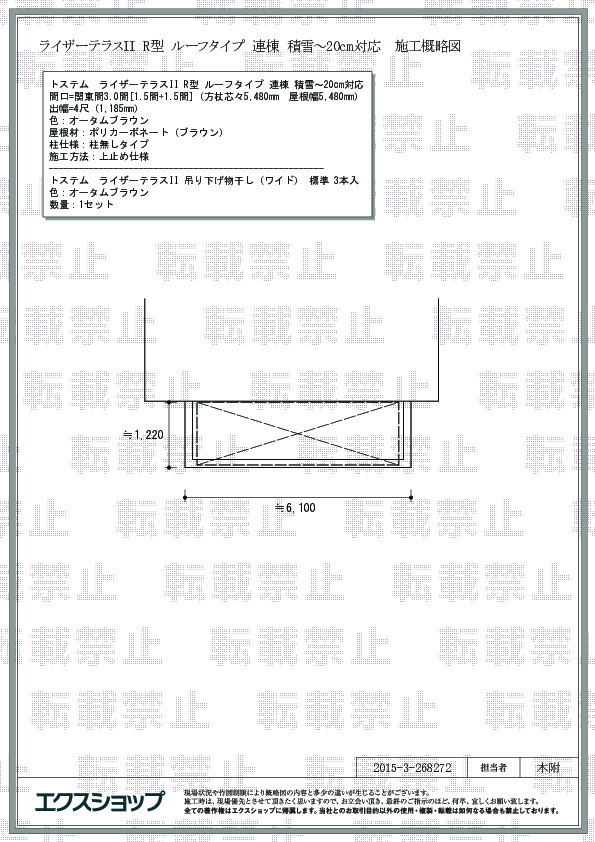 | サイズ | 屋根幅 5,480mm 出幅 1,185mm |