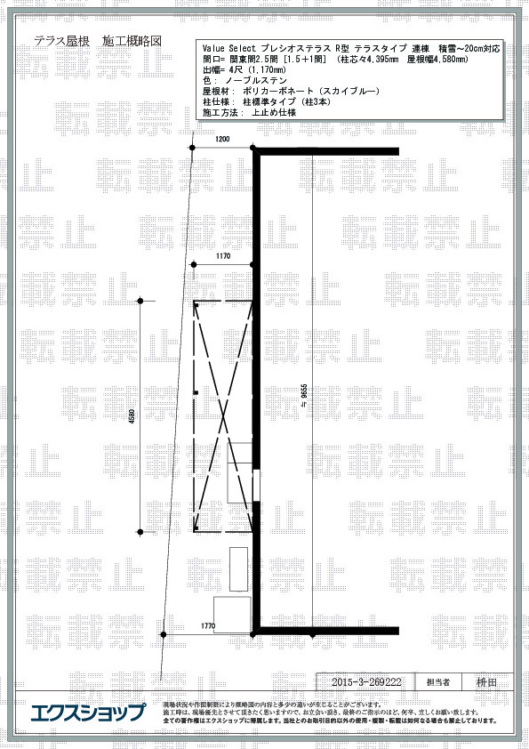 | サイズ | 屋根幅 4,580mm 出幅 1,170mm |
