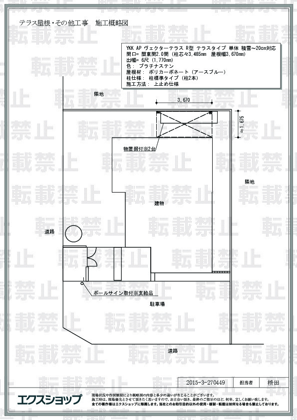 | サイズ | 屋根幅 3,670mm 出幅 1,770mm |