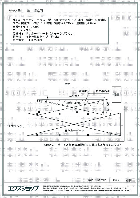 | サイズ | 屋根幅 6,400mm 出幅 1,770mm |