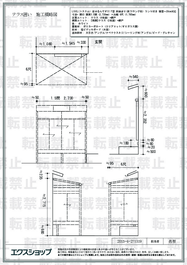 | サイズ | 間口 2,730mm 出幅 1,785mm |