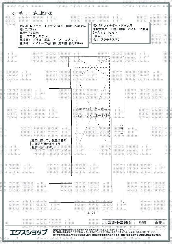 今度新車を購入するのに、炎天下では、車が焼けるので、カーポートを設置したかったので。色々ネットでみて、ホームセンターをみてみましたが、エクスショップさんが1番でした。現場を見ていただいて見積もりをいただいて、バッチリでした。工事を担当していただいた業者さんも、暑い中、頑張っていただきました。本当にありがとうございました。