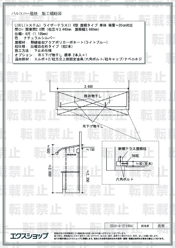 サイズ | 屋根幅 3,660mm 出幅 1,185mm |