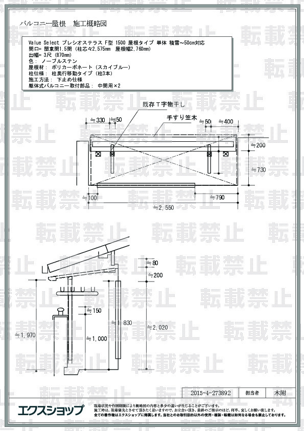 | サイズ | 屋根幅 2,760mm 出幅 870mm |
