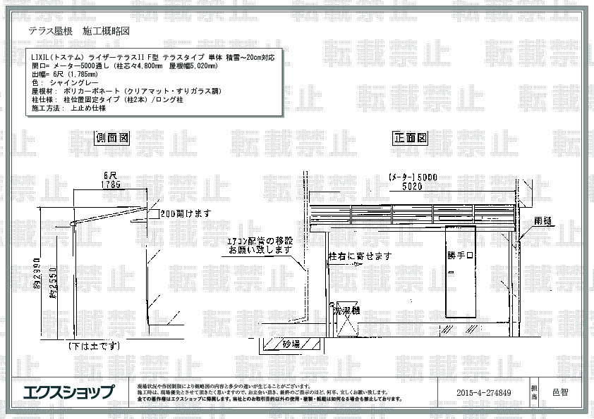 【商品カテゴリ >テラス屋根】(ご質問No.737)