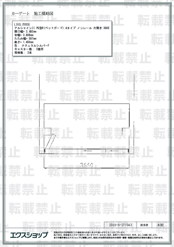 車庫に犬、猫が入り込み車にいたずらをされたので、侵入防止として車庫の周り三方に開閉式フェンスを設置。まだ完工後に確認していないが、効果はありそう。エクスショップはインターネットで手続きが可能で、必要に応じ電話での連絡もでき、迅速な対応をしてもらった。