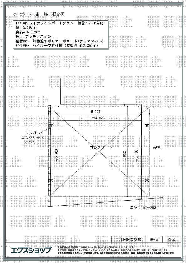 この度はレイナツインポートグランの施工をご依頼頂き、誠に有り難うございました。施工店の協力によりお客様のご要望をしっかりとお聞きすることが出来、ご満足頂ける施工内容となりましたこと、私どもも大変嬉しく存じます。ワイドタイプのカーポートが駐車スペースを包み込み、頼もしさを感じるお仕上がりでございますね。しっかりとした安定感で、大切なお車をお守りするパートナーとし、末永くご利用頂ければ幸いでございます。お顔の見えないネット販売ではございますが、今後も、お客様に最大限ご満足頂けるエクスショップを目指し努力して参ります。また機会がございましたら、是非エクスショップにご用命頂きますよう宜しくお願い致します。