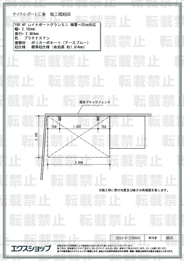 「地域密着あんしん施工」にてレイナポートグランミニの施工をご依頼頂き、その施工技術に高い評価を頂きましたこと、誠に光栄に存じます。ポリカーボネート(アースブルー)の屋根材は、雨だけではなく、有害な紫外線も遮りますので、ご家族の自転車などの劣化を防ぐことが出来るものと存じます。これからも、お客様のご期待を裏切らないよう精進して参ります。また機会がございましたら、是非エクスショップをご利用して頂きますよう、宜しくお願い致します。