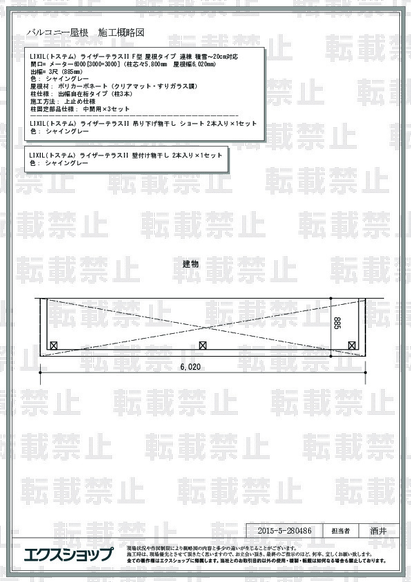 | サイズ | 屋根幅 6,020mm 出幅 885mm |