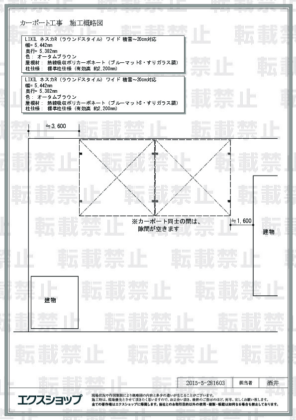 この度は、エクスショップをご利用頂きまして、誠の有り難うございます。カーポートが完成したことにより、雨の日でも傘をさす必要がなく、乗り降りもスムーズでございますね。今後も、お客様のご期待にお応え出来るよう、日々精進して参りますので、また機会がございましたら、エクスショップをご用命頂きますよう宜しくお願い致します。