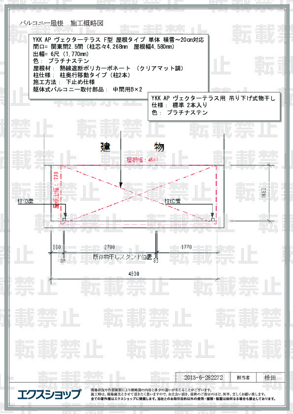 | サイズ | 屋根幅 4,580mm 出幅 1,770mm |