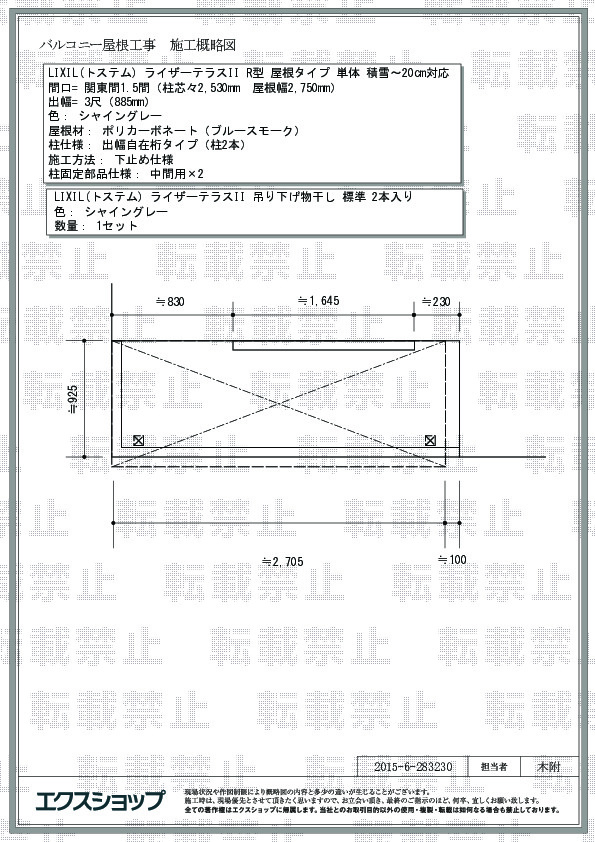 | サイズ | 屋根幅 2,750mm 出幅 885mm |