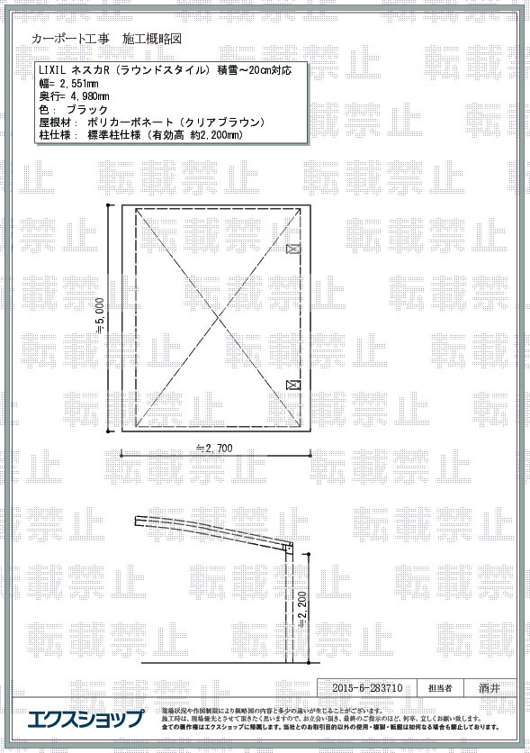 この度は、ネスカR (ラウンドスタイル) の施工をご依頼頂きまして、誠に有り難うございます。カーポートのブラックのお色が引き締め役となり、大変スタイリッシュなお仕上がりでございますね。お客様の愛車を雨や鳥のフンから守ってくれる、頼もしい存在となることと存じます。施工を伴うエクステリア商品を、顔の見えないネットショップでご購入頂くにあたりまして、不安もおありになったかと存じますが、私どもは、お客様のそんな不安を少しでも解消することを使命と捉え、日々サービスの追求に励んでおります。またのご利用を心よりお待ち申し上げております。