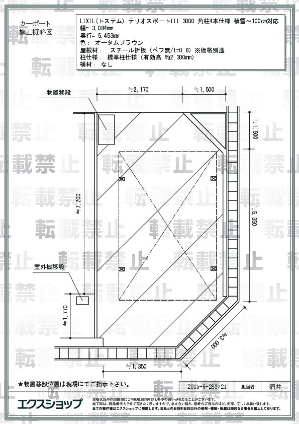 この度は、テリオスポートIII 3000 角柱4本仕様の施工をご依頼頂きまして、誠に有り難うございます。弊社営業担当者と施工担当者との連携に不備がありましたことでご迷惑をお掛け致しました。今後はネットショップならではの価格だけでなく、施工に至るまでのご説明の面でもお客様にご満足頂けますよう、スタッフ一同精進して参りますので、またの機会がございましたら、是非お気軽にエクスショップにご用命下さいますよう、宜しくお願い申し上げます。
