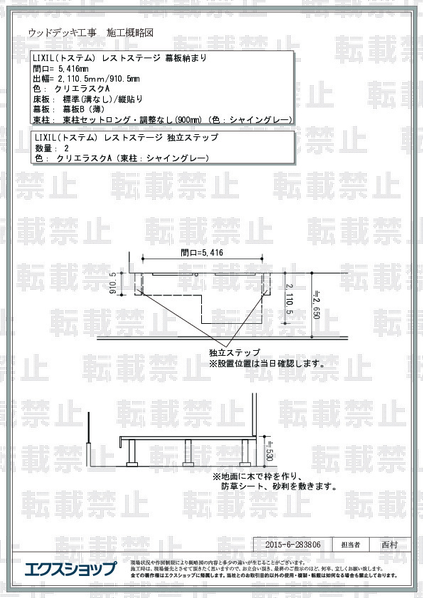 この度は、レストステージ 幕板納まりの施工をご依頼頂きまして、誠に有り難うございます。ウッドデッキは、お洗濯などの家事に役立つだけでなく、ご家族の憩いのスペースとしてもご利用頂けますので、ご家族の生活にもゆとりが生まれることと存じます。今後も弊社は、エクステリアの施工を通しまして、お客様のご家庭に笑顔をお届けすることのできるサービスを追求して参ります。またの機会がございましたら、是非お気軽にエクスショップにご用命下さいますよう、宜しくお願い申し上げます。