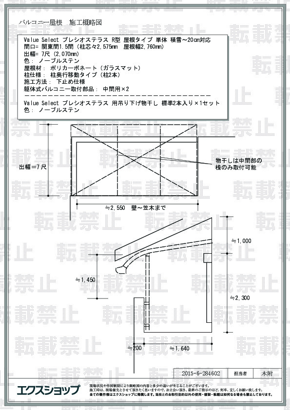 サイズ | 屋根幅 2,760mm 出幅 2,070mm |