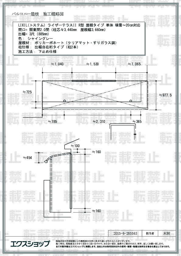 サイズ | 屋根幅 3,660mm 出幅 885mm |