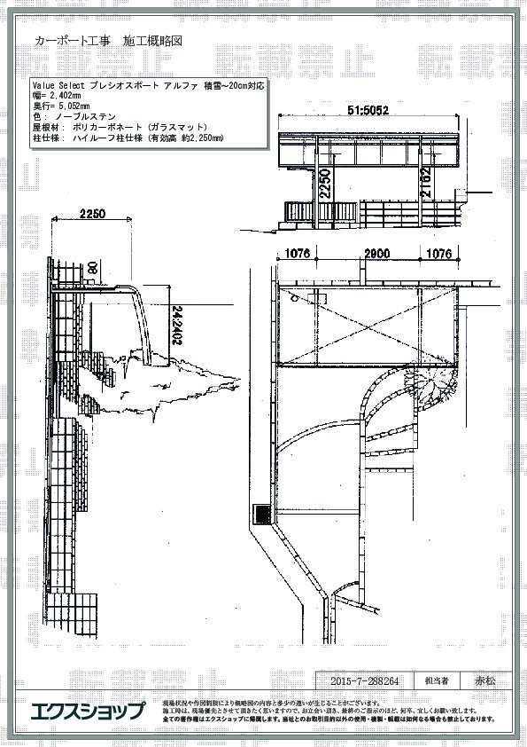 この度は、 プレシオスポート アルファの施工をご依頼頂きまして、誠に有り難うございます。今回、施工頂きました商品は、弊社の独自ブランドで、機能性とコストパフォーマンスを兼ね備えた自信の一品です。今後もお客様の笑顔のため、日々精進して参ります。また機会がございましたら、エクスショップをご用命頂きますよう、宜しくお願い致します。