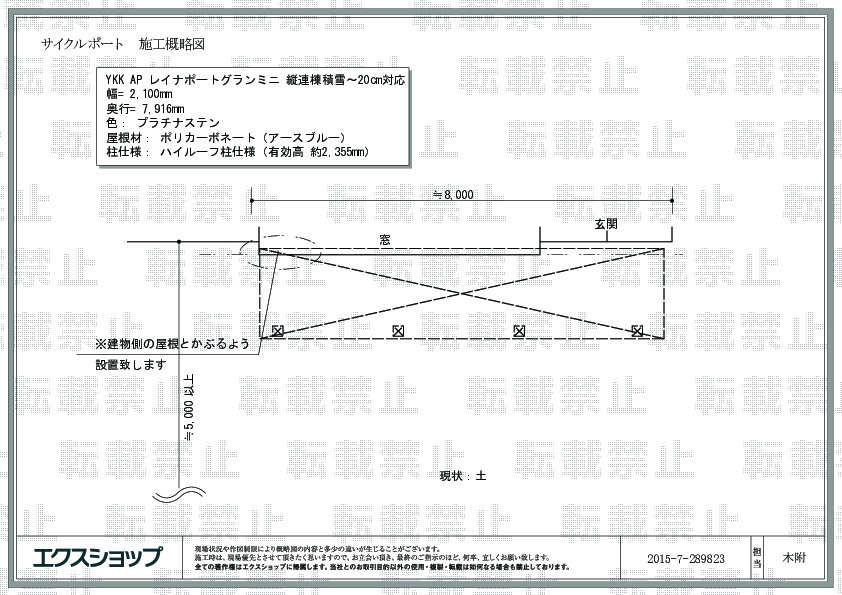 この度はレイナポートグランミニ 縦連棟の施工をご依頼頂き、誠に有り難うございました。玄関前の広いスペースをしっかり覆う屋根が完成し、『大変満足しております』とのご感想をお寄せ頂きましたこと、私どもも何より嬉しく存じます。雨の他に有害な紫外線もカットする機能的な商品で、お客様の快適な暮らしのサポートが出来ますことを、願っております。これからもお客様満足度100%を目指して、エクスショップは日々精進して参ります。また機会がございましたら、是非弊社にご用命くださいますよう、宜しくお願い致します。