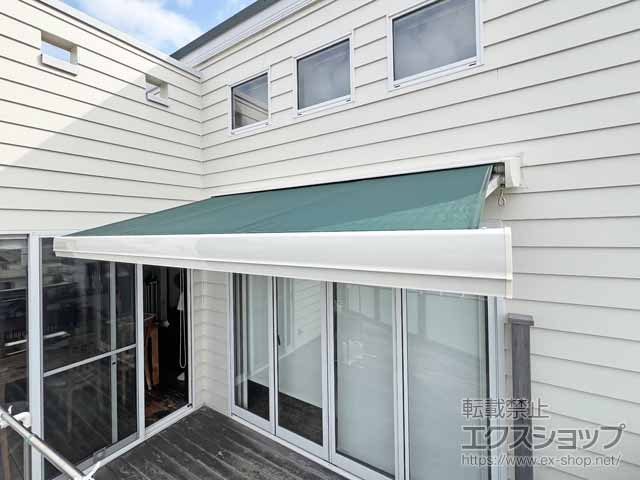 緑の素敵な色のオーニング設置により、部屋からのウッドデッキ入口に日よけと雨よけのシェード部分をつくることができ、快適になりました!!商品・工事ともに明瞭・低価格で満足しております。