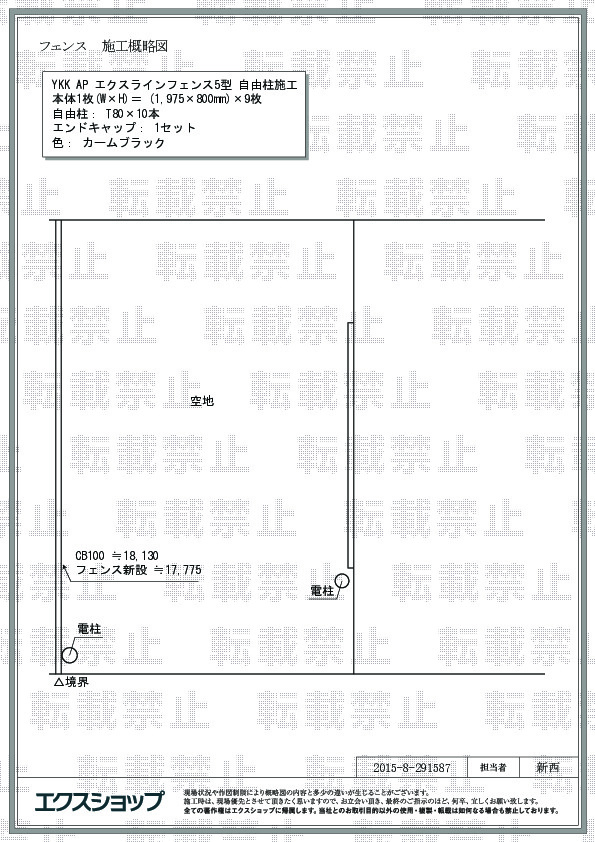 この度はエクスラインフェンス5型 の施工をご依頼頂き、誠に有り難うございました。豊富なラインナップの中からお客様のご要望により近い商品選択を実現することができましたこと、また、『予想通りで理想的なフェンスが完成しました』とのご感想をお寄せ頂きましたこと、何より嬉しく存じます。これからもお客様のご要望にかなった完成を目指して、努力して参ります。また機会がございましたら、是非エクスショップにご用命頂きますよう宜しくお願い致します。