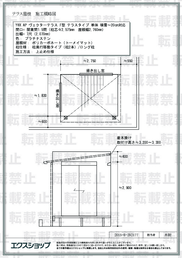 | サイズ | 屋根幅 2,760mm 出幅 2,070mm |