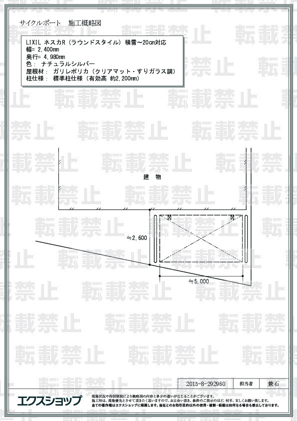 この度はネスカR (ラウンドスタイル)の施工をご依頼頂き、誠に有り難うございます。雨や紫外線を遮る空間を、駐輪場としてご活用頂いておりますこと、スタッフ一同嬉しく存じます。これからもお客様に安心とご満足をお届け出来るよう、エクスショップは日々精進して参ります。また機会がございましたら、是非弊社にご用命くださいますよう、宜しくお願い致します。