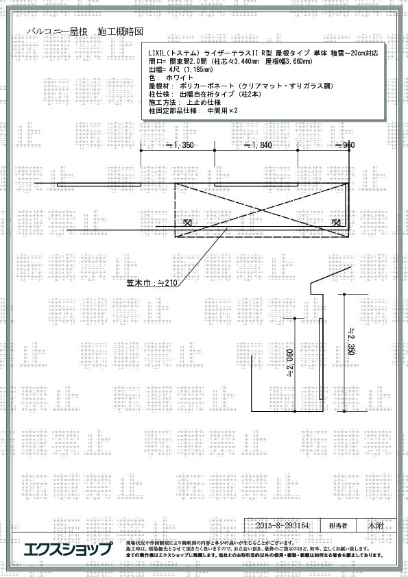 | サイズ | 屋根幅 3,660mm 出幅 1,185mm |