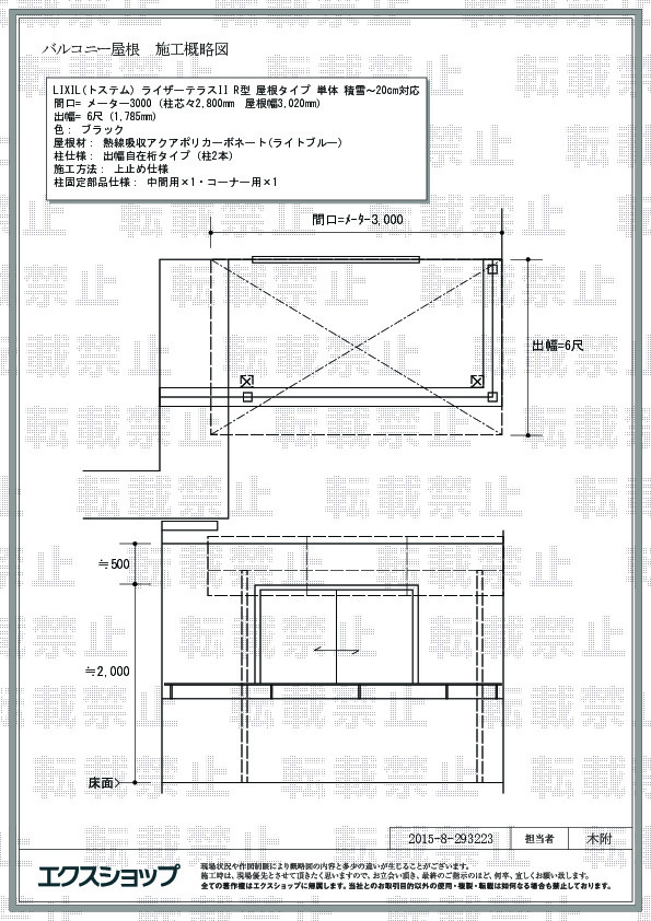 サイズ | 屋根幅 3,020mm 出幅 1,785mm |