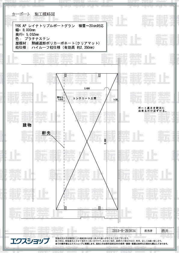 この度はレイナトリプルポートグランの施工をご依頼頂き、誠に有り難うございます。お車3台分のスペースをしっかりと覆う頼もしいカーポートが綺麗に納まり、安心感のある仕上がりでございますね。施工に際しまして、ご連絡不足によりお客様にご心配とご迷惑をお掛け致しましたことを、深くお詫び申し上げます。お客様より頂いたご意見は施工担当者にも申し伝え、改善を求めて参りたいと存じます。今後お客様に100%ご満足頂けるショップを目指して精進して参りますので、また機会がございましたら是非エクスショップにご用命ください。またのご利用を心よりお待ち申し上げております。