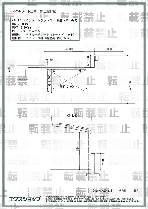 この度はレイナポートグランミニの施工をご依頼頂き、誠に有り難うございます。プラチナステンのフレームと透明度の高い屋根材の取り合わせが明るく、お住まいの外観ともマッチしたお仕上がりでございますね。開放感を損なわず自転車をしっかりお守りする機能的なサイクルポートでございますので、永くご愛用頂けるものと存じます。これからもお客様の笑顔の為に、エクスショップは日々精進して参ります。また機会がございましたら、是非弊社にご用命くださいますよう、宜しくお願い致します。