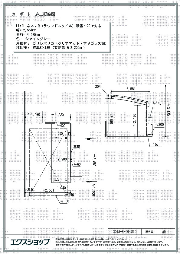 | 屋根高等 | 標準柱仕様(有効高 約2,200mm) |