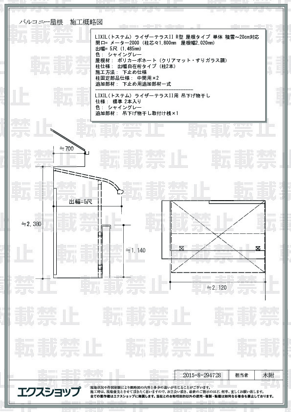 | サイズ | 屋根幅 2,020mm 出幅 1,485mm |