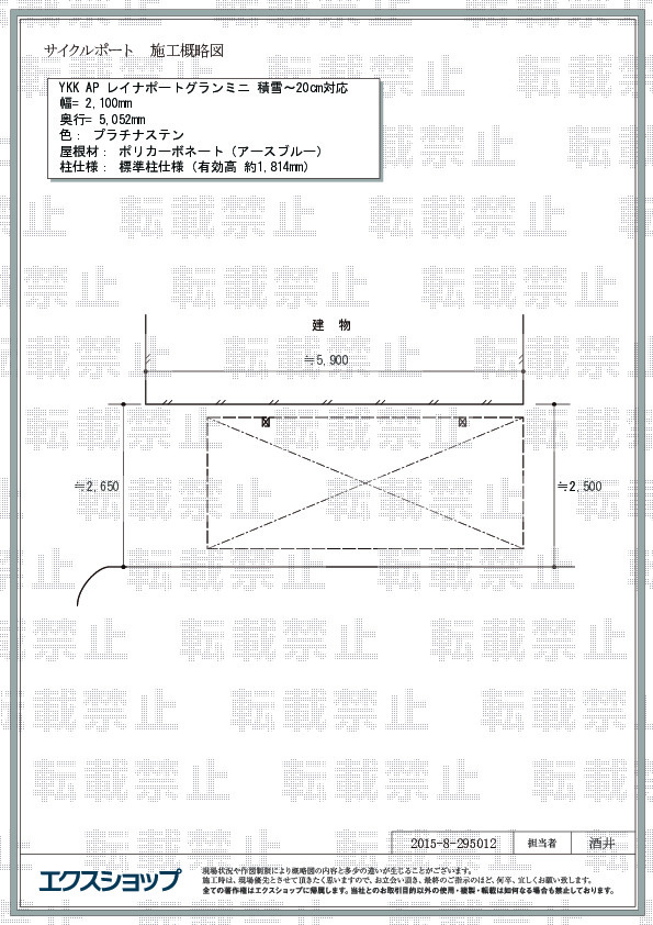 この度はレイナポートグランミニの施工をエクスショップにご依頼頂き、有り難うございました。お客様のイメージ通りの完成となりましたこと、私どもも大変嬉しく存じます。雨や紫外線は遮りますが、適度に光を通しますポリカーボネート(アースブルー)の屋根材ですので、天候に関係なく快適にご使用頂けるものと存じます。これからもお客様に安心と満足をお届け出来るよう、エクスショップは日々精進して参ります。また機会がございましたら、是非弊社にご用命くださいますよう、宜しくお願い致します。