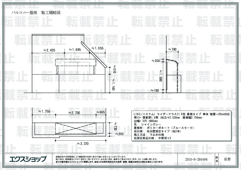 | サイズ | 屋根幅 2,750mm 出幅 885mm |