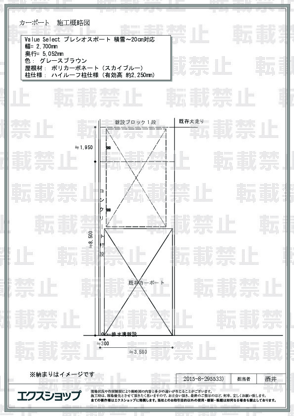 当初は、高額の買物で工事を伴うカーポートを、インターネットショップに依頼する事の不安が有りましたが、見積調査の施工店立会いで信頼できると感じました。電話によるエクスショップの対応も満足のいくものでした。