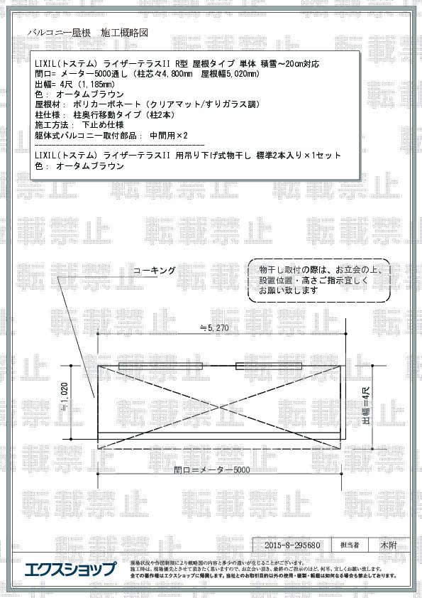 | サイズ | 屋根幅 5,020mm 出幅 1,185mm |