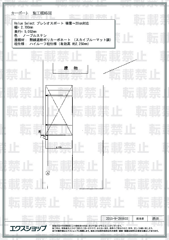 数多くございますショップの中からエクスショップをお選び頂き、誠に有り難うございます。雨や紫外線を遮るプレシオスポート が設置され、大切な愛車を安心して駐車して頂けますね。直射日光も遮られますので、お車をいつまでも美しくご使用頂けるものと存じます。これからも迅速で丁寧な対応を心掛け、全てのお客様に安心してご利用頂けるショップを目指して精進して参ります。また機会がございましたら、是非弊社にご用命くださいますよう、宜しくお願い致します。