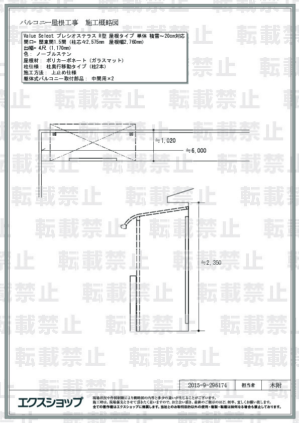 | サイズ | 屋根幅 2,760mm 出幅 1,170mm |