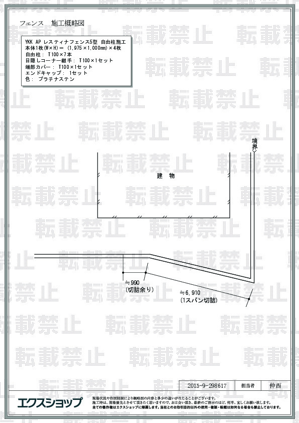 この度はレスティナフェンス5型の施工をご依頼頂き、誠に有り難うございました。数種類のお見積もりをご検討頂き、お客様のご要望により近い形で施工することが出来ましたこと、私どもも嬉しく存じます。目隠し機能を保ちつつ、通風性を確保したルーバータイプのフェンスにより、お客様の暮らしがより安心・快適なものとなりますことを願っております。今後益々精進して参りますので、また機会がございましたらエクスショップにご用命ください。またのご利用を心よりお待ち申し上げております。