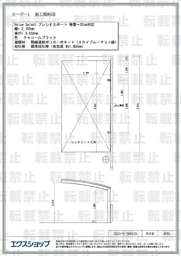 プレシオスポートの施工をご依頼頂き、誠に有り難うございました。カーポートの柱高さに付きまして、ご説明不足によりご迷惑をお掛け致しましたことを、お詫び申し上げます。お客様から頂いたご意見を真摯に受け止め、今後はより的確できめ細やかな対応に努めて参りたいと存じます。万が一不都合がございましたら、エクスショップまでご連絡下さい。この度は誠に申し訳ございませんでした。