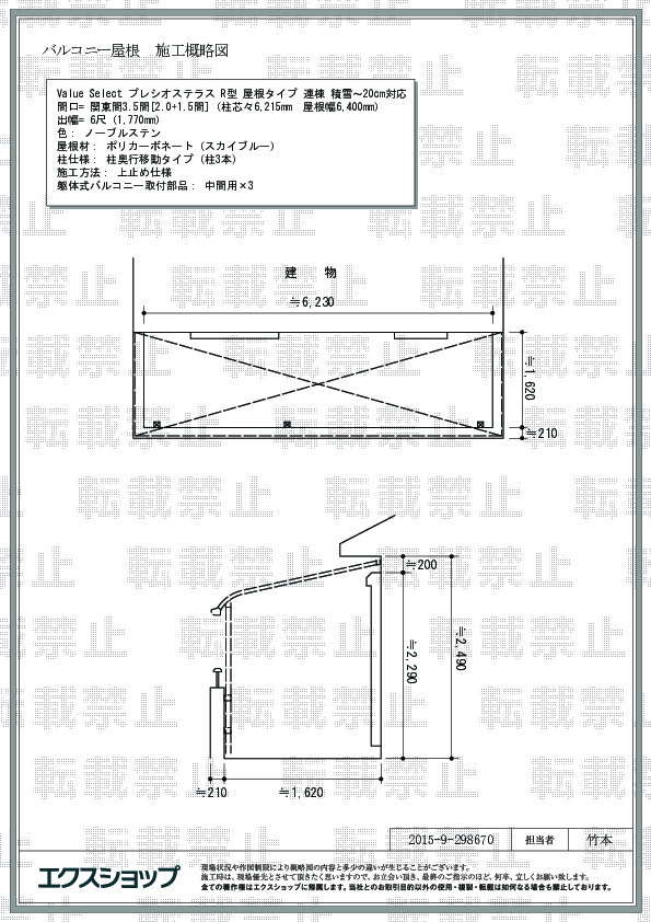 サイズ | 屋根幅 6,400mm 出幅 1,770mm |