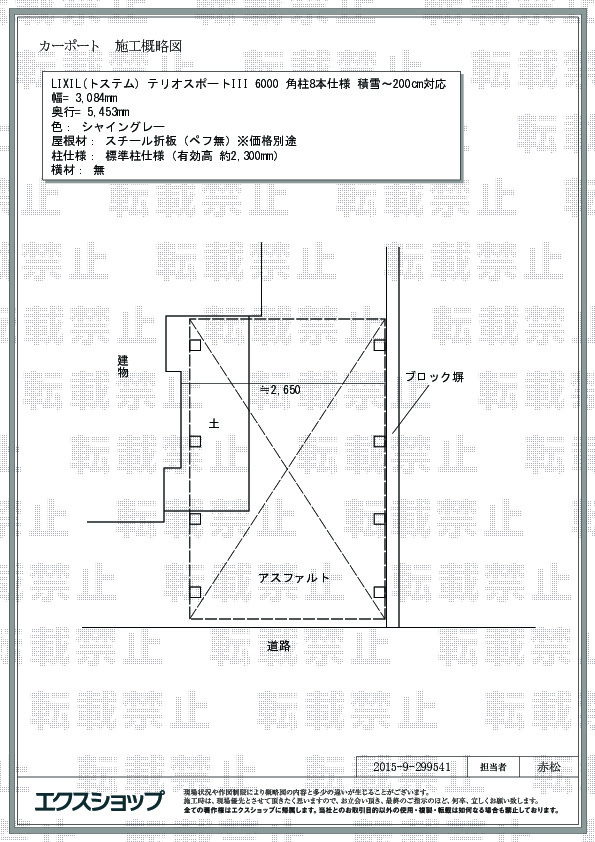 この度はテリオスポートIII 6000 角柱8本の施工をご依頼頂き、誠に有り難うございます。積雪に200cmまで対応の頼もしいカーポートが完成し、寒さ厳しい季節も安心してお過ごし頂けますね。雪降ろしにかかる負担も軽減され、お喜び頂いているものと存じます。これからもお客様の快適なお住まいづくりのお手伝いが出来ますよう、エクスショップは日々精進して参ります。また機会がございましたら、是非弊社にご用命くださいますよう、宜しくお願い致します。